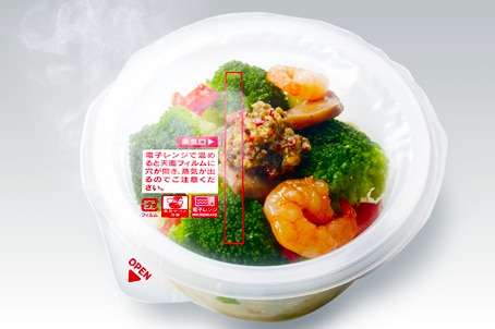 蒸し調理効果や加温時間の短縮がはかれる自動蒸通フィルムです。
